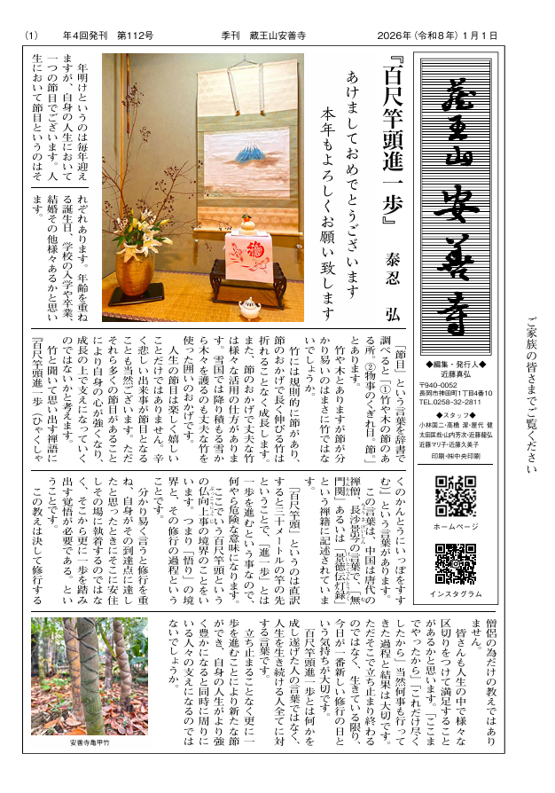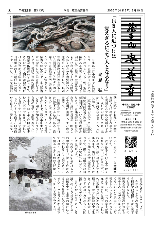 季刊 蔵王山安善寺112号を更新しました。
